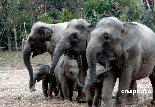图:五只小亚洲象春节亮相香江野生动物世界