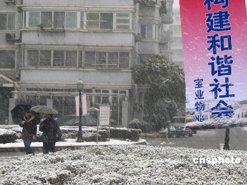 2月1日下午,上海再降大雪。上海中心气象台当日下午13时36分发布暴雪黄色预警信号,这是上海首次发布暴雪预警。中新社发 严大明 摄