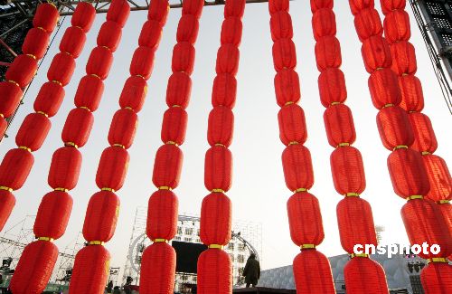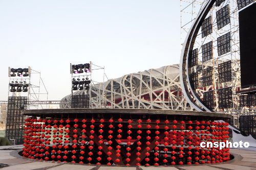 图:“鸟巢”奥运工地挂红灯笼迎新年