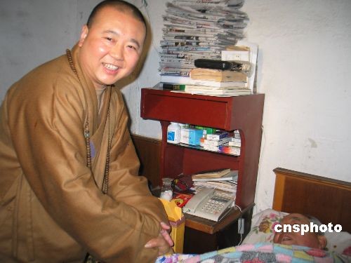图:春节前上海玉佛寺僧职人员探望特困居民