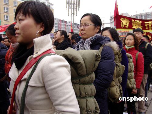 2月13日,贵州省清镇市举行“抓重建、保民生--千名机关干部走进灾区”出征仪式。由1000多名机关干部组成的19个工作组,打着背包分赴工业、农业、三产等各受灾点,参与当地灾后重建工作。中新社发 申时进 摄