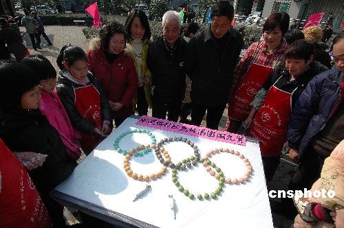 2月17日下午,“五环汤团闹元宵”活动在杭州水澄桥社区民安苑中心花园举行,350名社区居民纷纷前来一展身手,一起制作“五环汤团”,在喜迎元宵佳节的同时表达对北京奥运的祝福与期盼。中新社发 引炜 摄