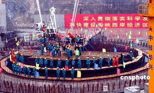 2月18日,福建宁德核电站的工程技术人员在该核电站1号核岛进行有关项目浇注施工。同时,福建宁德核电站开工仪式在福建省宁德福鼎市秦屿镇备湾隆重举行,这是福建有史以来的最大能源投资项目。中新社发 刘可耕 摄