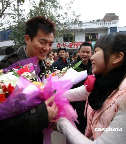 2月18日上午,著名足球解说员黄健翔在父亲黄西孟和叔公黄振淳等亲属的陪同下,回到祖辈们居住过的重庆市永川区五间镇新建村旧居,受到了乡亲们的夹道欢迎,同时到曾祖父黄大暹的墓冢前祭拜。中新社发 陈仕川 摄