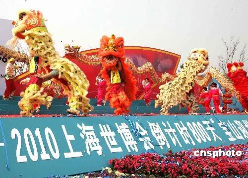 图:上海舞龙舞狮欢庆世博会倒计时八百天