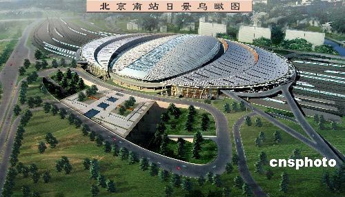 北京南站计划于4月25日进入机电设备调试,6月26日基本完工全面进入试运行,8月1日开通运营。图为北京南站效果图。中新社发 张宇 摄