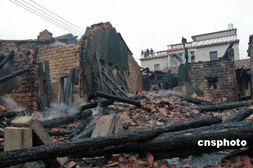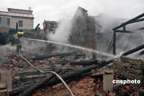 2月25日中午,福建惠安螺阳前型村村下一百年古厝突起大火,在消防官兵的奋力抢救下无人伤亡,但古厝受损严重,目前起火原因正在进一步调查。中新社发 傅丹丹 摄