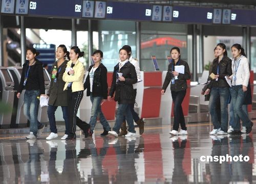 图:大批靓丽女员工上岗北京首都机场新航站楼