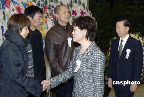 2月28日,著名作家浩然的遗体告别仪式在北京八宝山革命公墓举行,中国作家协会主席铁凝(右二)及作协党组书记、副主席金炳华(右一)前往送别。浩然本名梁金广,其代表作有文革时期发表的长篇小说《艳阳天》、《金光大道》等。中新社发 徐曦弋 摄