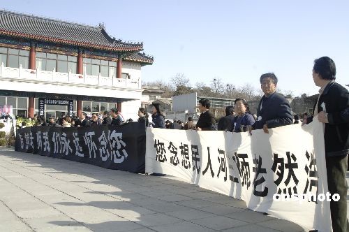 2月28日,著名作家浩然的遗体告别仪式在北京八宝山革命公墓举行。浩然本名梁金广,其代表作有文革时期发表的长篇小说《艳阳天》、《金光大道》等。80年代以后,浩然长住三河市,创办《苍生文学》杂志,并完成了三卷本自传体小说《乐土》、《活泉》和《圆梦》。中新社发 徐曦弋 摄