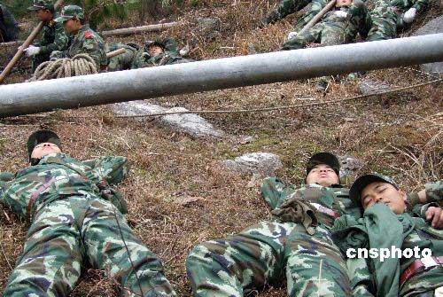 武警贵州总队黔东南州支队200余名官兵继续奋战在黄平县电力抢修第一线。截止3月1日,武警黔东南州支队共出动官兵1500余人次,连续20天帮助驻地电力部门抢修因冰灾受灾。中新社发 阳洪波 摄