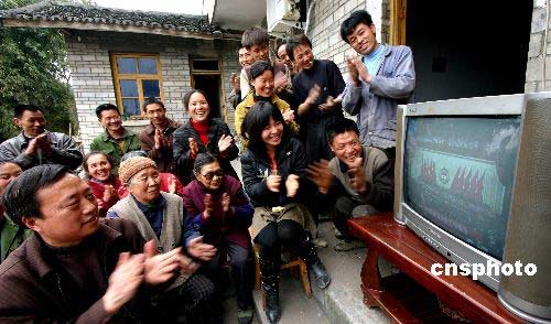 3月3日,重庆市永川区双石镇五龙桥村的村民在收看全国政协十一届一次会议开幕式盛况。中新社发 陈仕川 摄
