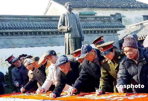 3月4日,浙江绍兴市各界和杭州市的1000多名干部群众、解放军官兵来到绍兴周恩来纪念馆举行重温入党誓言,签名学习总理风范纪念活动。3月5日是周恩来诞辰110周年。中新社发 袁云 摄