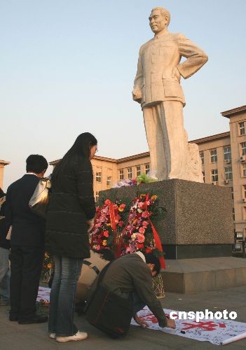 3月5日是周恩来诞辰110周年纪念日。清晨,天津南开大学学生来到校园内周恩来塑像前瞻仰献花,纪念和缅怀这位最崇敬的校友。中新社发 田齐 摄