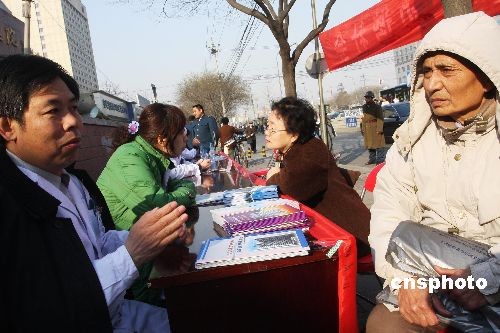 3月5日,北京某部队开展“学雷锋 迎奥运”系列活动,义务为市民提供免费修自行车、测血压、营养咨询等活动,以“微笑服务奥运活动”为主题来庆祝学雷锋纪念日。中新社发 郑雄增 摄