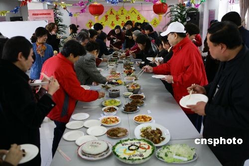 3月7日,北京市东城区东四罗家社区举办百家宴庆祝三八妇女节,近百户居民拿来了自己的拿手菜,集中到一起供大家品尝、评选。中新社发 杜洋 摄