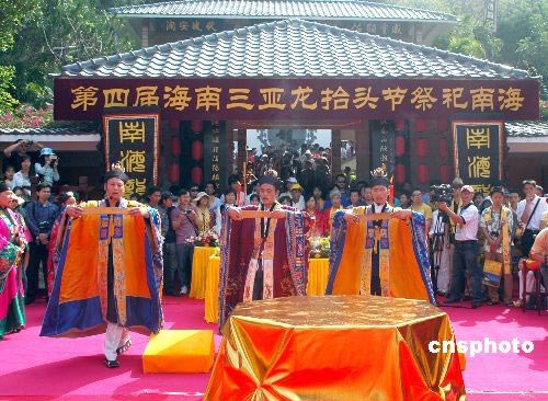 3月9日是中国农历二月初二,民间传统的龙抬头节,中国各地都有不同的习俗祭龙祈福。海南因四面环海,百姓对此节日更显重视。第四届海南三亚龙抬头节祭祀南海暨三亚“蓝丝带”海洋保护海南行首发式当天在三亚南山大小洞天景区隆重举行。人们举行庄严的道教仪式祭祀南海与南海龙王,祈祷风调雨顺,国泰民安。中新社发 尹海明 摄