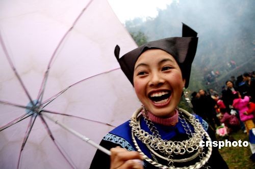 3月9日,有“千里苗疆门户”之称的贵州三穗县台烈镇寨头村的数千苗族同胞,云集村外“接龙桥”,欢度“祭桥节”。据悉,每年农历二月二,当地都要杀猪宰牛举行祭祀仪式,举办隆重盛大的“祭桥节”,以此来祈愿风调雨顺、五谷丰登。