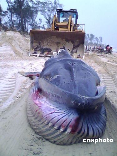 图:重约二千斤的鲸鱼在海南文昌搁浅死亡