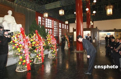 中共中央统战部副部长楼志豪向孙中山像敬献花篮。