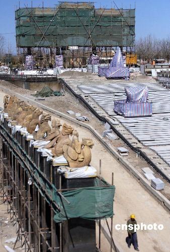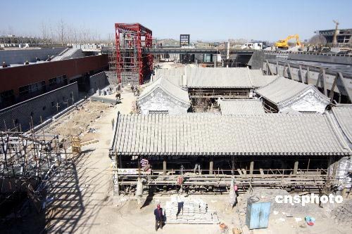 3月13日,极富中国特色的北京奥林匹克公园下沉花园初具规模。不久,一个充满东方建筑韵味的院落组合将展现在人们面前。据悉,建成后的奥林匹克公园下沉花园将展现七个中国特色的院落。从紫禁城的红墙,到北京的四合院,从历经千年的鼓乐,到盛唐的马球运动,在这里都有体现。中新社发 吴芒子 摄