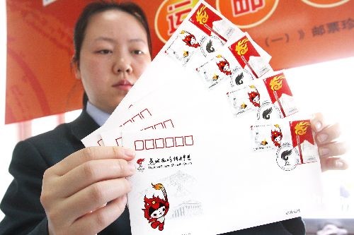 图:中国发行“奥运火炬接力”邮品