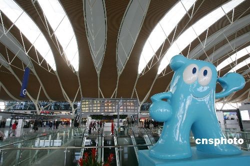 3月26日,上海浦东国际机场2号航站楼(T2)正式投入运营。首批15家国内外航空公司从即日起开始在T2迎来送往。新建的2号航站楼总建筑面积54.6万平方米,近2倍于1号航站楼。浦东机场以此进入了2座航站楼、3条跑道同时运营的新时代。预计到2010年,上海的机场吞吐客流量将达到近9000万人次,其中虹桥机场承担3000万人次,浦东机场承担近6000万人次。中新社发 汤彦俊 摄