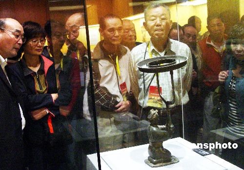 四月七日,两岸黄埔老兵在河南博物院参观。当日,黄埔军校两岸百名退役将领拜祖大典参访团一行访问河南,并将参加于四月八日在新郑举行的戍子年黄帝故里拜祖大典。中新社发 李志全 摄