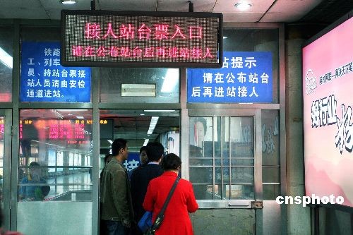 4月9日从北京站和北京西站获悉,随着奥运会临近,北京铁路安保提前进入奥运状态,进入售票大厅买票的旅客和进站台接站人员及列车工作人员,均要逐一接受安检。据称此举为与奥运安保接轨,进入“奥运安检模式”。中新社发 追影 摄