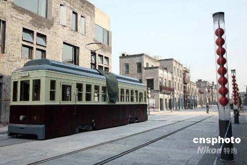 4月23日,消失了50年之久的“铛铛车”现身北京前门大街。据悉,该车长12米,共有“前门一号”和“前门二号”两辆,在前门大街上的行驶距离为800米,时速为5公里,单程大约10分钟。老北京俗称的“铛铛车”无轨电车,因其不时响起的铃铛声而得名,曾是古都风貌中的一个历史记忆。目前,御道两旁的“铛铛车”轨道也已铺设完成,轨道全长845米。中新社发 洪涛 摄