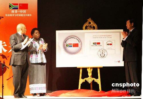 四月二十四日晚,共庆中国南非建交十周年的“南非风情周”在北京绚烂上演。为纪念中国南非建交十周年设计的邮票正式发行。中新社发 任海霞 摄
