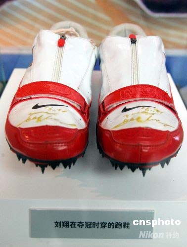 图:刘翔雅典夺冠时所穿跑鞋在沪亮相