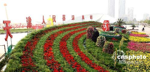 图:天津奥运花坛盼靓城市