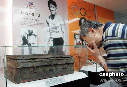 5月6日,在即将闭幕的“奥林匹克—上海记忆”展览上,许多市民争睹该国宝级的“奥运皮箱”。张学良将军赠送给“中国奥运第一人”刘长春参加1932年洛杉矶奥运会时携带的皮箱,正成为上海时尚展品。中新社发 潘索菲 摄
