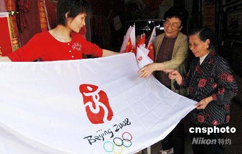 图:“祥云”将抵泉州 市民热买奥运旗帜