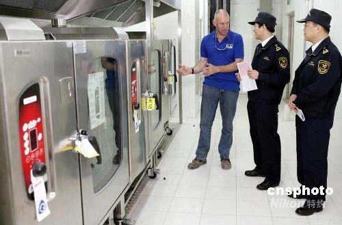 近日,北京海关在媒体村对一批奥运物资进行现场验放。该批物资为奥运会所需的厨房设备,共计3个集装箱。北京海关组织24小时的现场支持,到运动员村,媒体村,国际广播中心和新闻媒体中心等各个现场对货物进行查验。中新社发 雷虹 摄