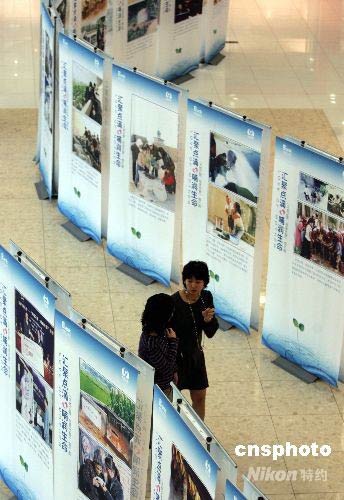 5月1日至5月11日,新中关购物中心为期11天的“2008大爱无疆·母亲水窖”活动旨在动员广泛的社会力量,关注西部,关注贫困,关注缺水地区的母亲和儿童,帮助他们建更多的“母亲水窖”。同时,“大地之爱·母亲水窖”摄影展举办,多幅图片真实记录下了西部地区缺水、贫困的震撼场面,也向人们展示了“大地之爱·母亲水窖”从成立到现在所走过的历程,以及“母亲水窖”建成后对于当地群众生活的影响。中新社发 杨可佳 摄