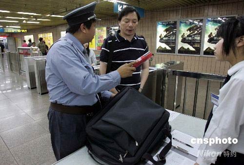 5月10日上午,在上海徐家汇地铁站的安全检查通道,一乘客因携带危险物品被劝说退票。从今天起,上海轨道交通所有车站开辟专用安全检查通道,由专人全天候逐一对乘客携带的箱包进行安全检查,据了解,从4月15日至今,上海轨交查堵危险品1200余件。主要有液化气钢瓶、烟花、油漆、装修胶水等,其中,依法对700余名违法携带危险物品的人员依法做出行政处罚。中新社发 潘索菲 摄