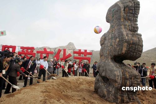 5月11日,“2008中国(乳山)母爱文化节”在威海大乳山滨海旅游度假区举行,开幕式上,各界来宾在大乳山旁为“母爱千年文化苑”奠基。本届文化节以弘扬“母爱、爱母、敬母、回报母亲”为主题,通过研讨会、女性服饰展等多种形式宣扬母爱。中新社发 张宇 摄