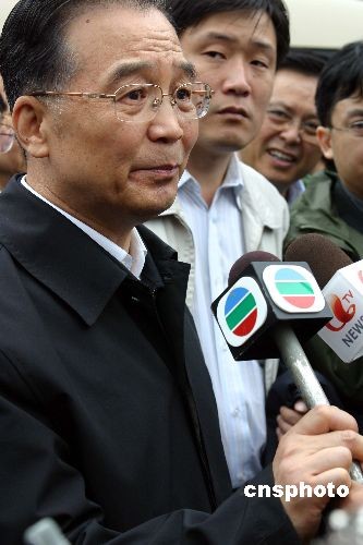 正在北川指挥现场抗震救险的中国总理温家宝接受香港电视媒体记者简短采访时表示,香港同胞无论采取何种方式对于我们灾区进行支援、帮助,我们都感谢。温家宝说,感谢香港同胞对四川这场灾难的关注和给予的支援,请香港同胞坚信,在中国政府的领导下,我们一定能够战胜这场自然灾难。面对香港记者关于“香港市民怎么帮助你们”的提问,温家宝说,这次灾难是历史上罕见的,山可以移动,但动摇不了我们抗震救灾的决心,水可以隔断,但隔断不了香港同胞和内地同胞的友情,香港同胞无论采取何种方式对于我们灾区进行支援、帮助,我们都感谢。中新社发 孙宇挺 摄