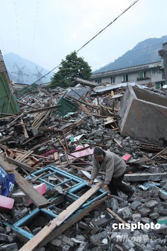 灾区见闻:震中映秀损失惨重 三千官兵抗震救灾