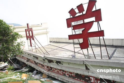 图为地震中倒塌的汶川中学。中新社发 张雷 摄