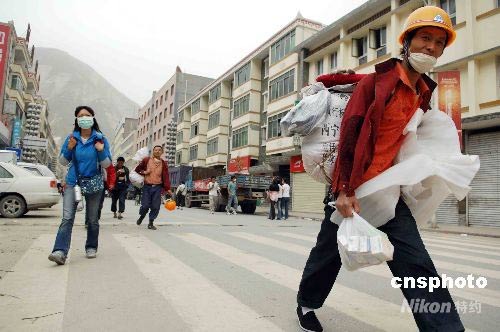 汶川地震灾区县城自受灾以来大小店铺关门,受灾民众情绪稳定、社会秩序良好。