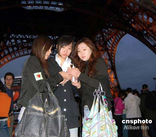 五月十八日晚,旅法华侨华人和中国留学生在巴黎埃菲尔铁塔下举行烛光祈福会,以表达对四川汶川大地震遇难同胞的哀思和对生者的祝福。中新社发 吴卫中 摄