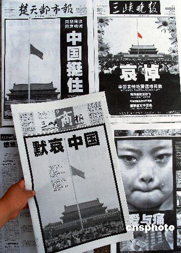 2008年5月20日是全国哀悼日的第二天,湖北《三峡商报》、《三峡晚报》、《楚天都市报》等多家报纸在头版整版推出“默哀”图片报道,向在四川大地震中遇难的同胞致哀。