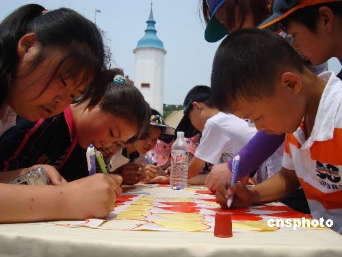 5月20日,“六一”儿童节前,众多长沙小朋友在长沙世界之窗心愿板上画上红心,写下祝福,共同为灾区人们祈祷。“愿灾区小朋友早日回家”成为孩子们儿童节前送给灾区同龄人的最大心愿。