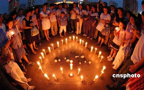 5月19日晚,新疆巴音郭楞蒙古自治州(简称巴州)团委在新疆库尔勒市人民广场举办共青团员“点燃蜡烛、寄托对汶川大地震遇难同胞的哀思”活动,为汶川地震遇难同胞默哀。中新社发 确·胡热 摄