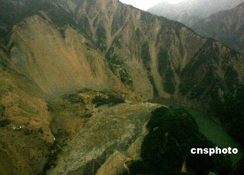 图:汶川地震大山崩塌形成危险的堰塞湖