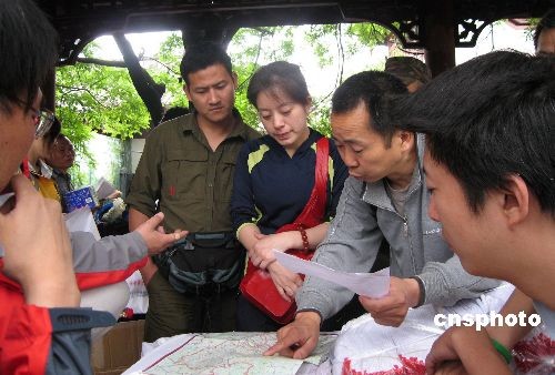 五月二十一日,在四川成都市一家户外探险者活动馆内,来自全国各地的民间志愿者召集人聚集一起,会商当天前往地震灾区送赈灾药品及相关物资问题。四川汶川“五·一二”大地震发生后,无数民间志愿者奔赴灾区参加各项服务工作,成为救援服务队伍中的一支重要力量。