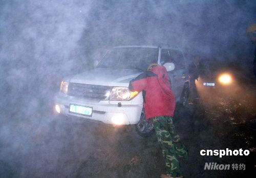 从5月21日晚至22日凌晨,中新社记者通过四川省雅安市的S210省际公路前往卧龙,海拔4000多米的夹金山顶峰被进出汶川地震重灾区的大型货车、救护车、转移灾民车等运输车辆堵塞,采访车多次深陷泥泞之中。由于目前通往汶川地震灾区的被毁公路在修复后极为脆弱,因此这条过去不起眼的公路成为连结成都与汶川的生命线。中新社发 任晨鸣 摄